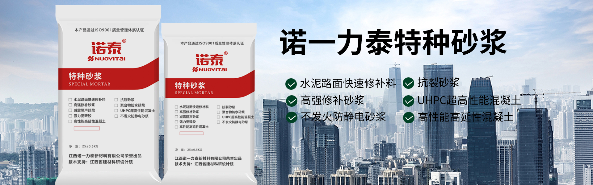 江西諾一力泰新材料有限公司位于江西宜春奉新縣,是專業從事灌漿料水泥路面修補砂漿抗裂砂漿防水砂漿、保溫砂漿、隔聲砂漿、粘結砂漿等砂漿系列產品生產銷售的廠家。